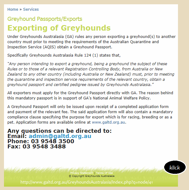 Eine Bestätigung der im Artikel gemachten Aussagen von Greyhounds Australasia habe