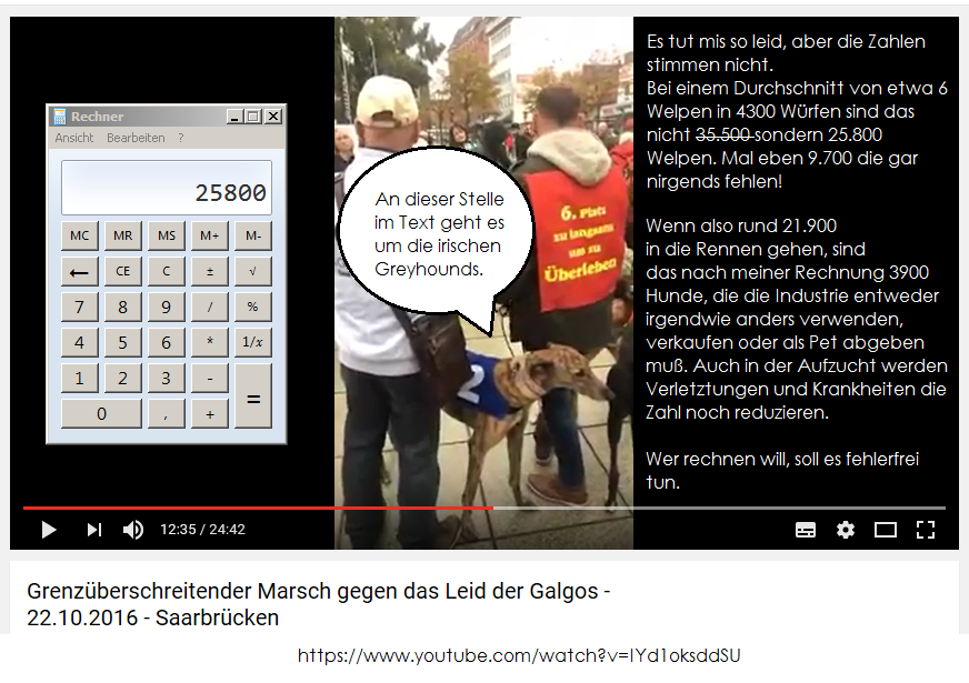 Grenzüberschreitender Marsch gegen das Leid der Galgos - 22.10.2016 - Saarbrücken Die Rede beginnt etwa bei Minute 9 des Videos.