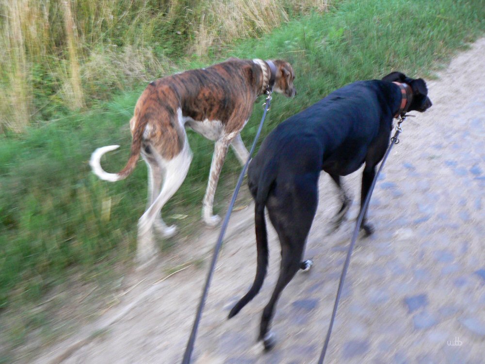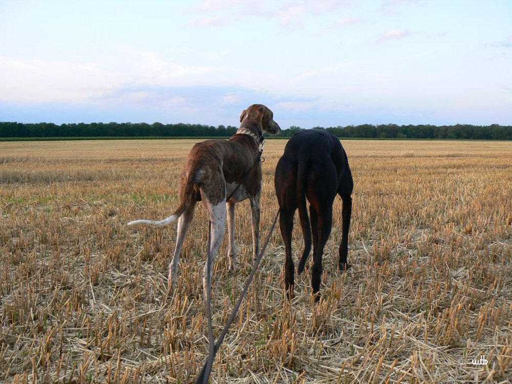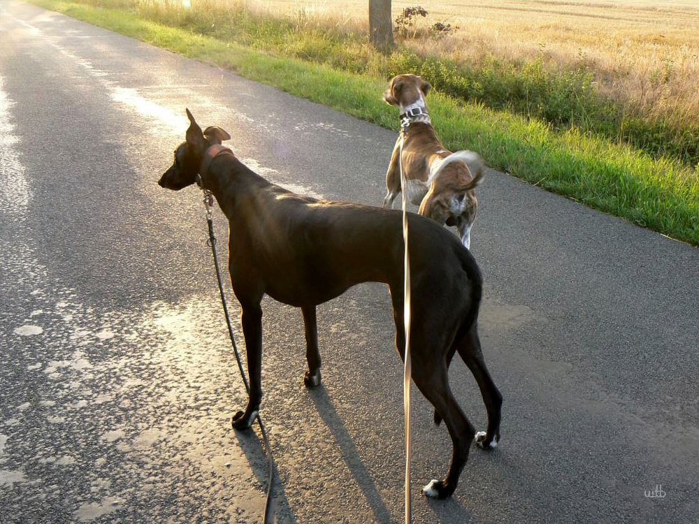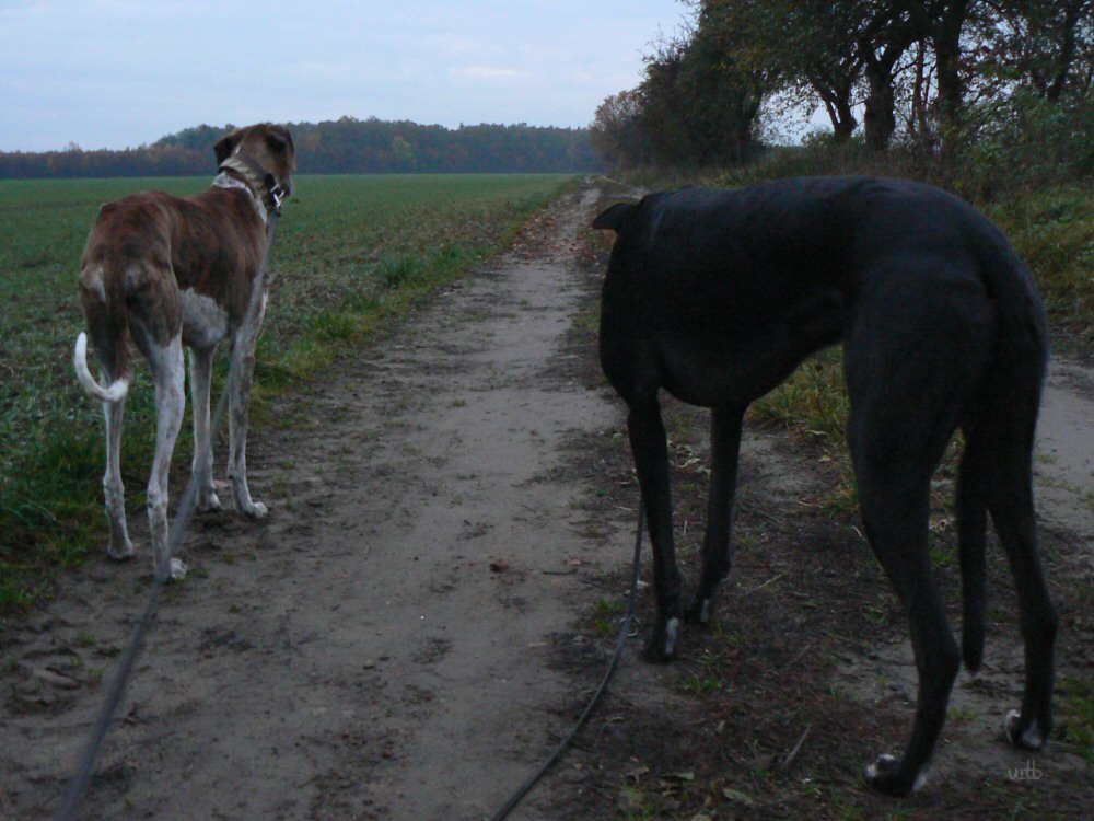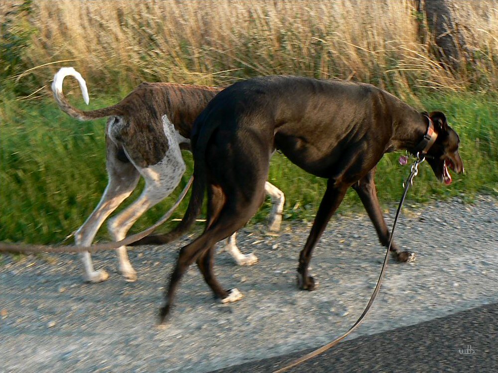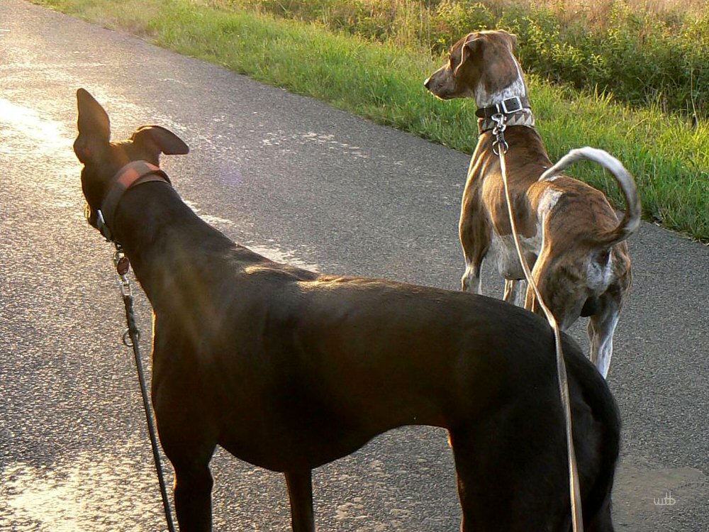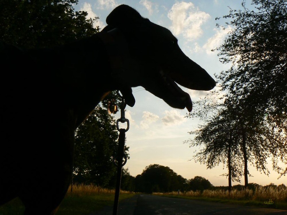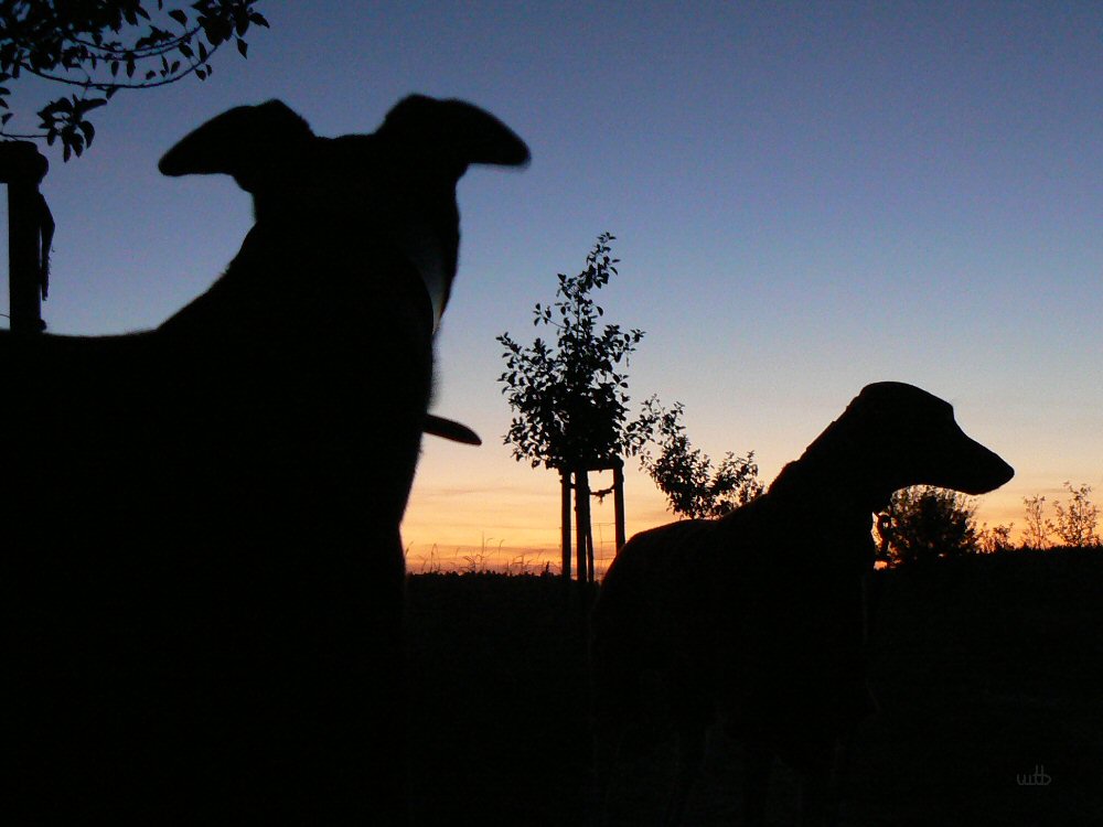 Gut Bilder! Netter Abendstimung, dass du beide windis schaft als silhouette bekommen hast ist toll, Hunde lassen sich sonst schlecht bei schwaches licht ablichten.