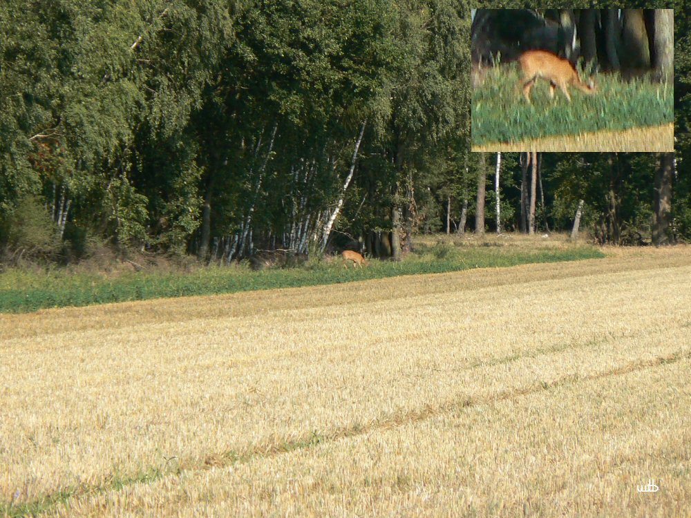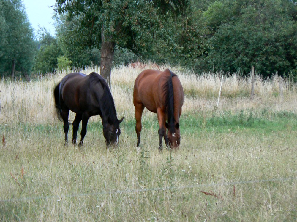 belehrt: Vielleicht 150 m weiter stehen sie nun grasend am Waldrand.
