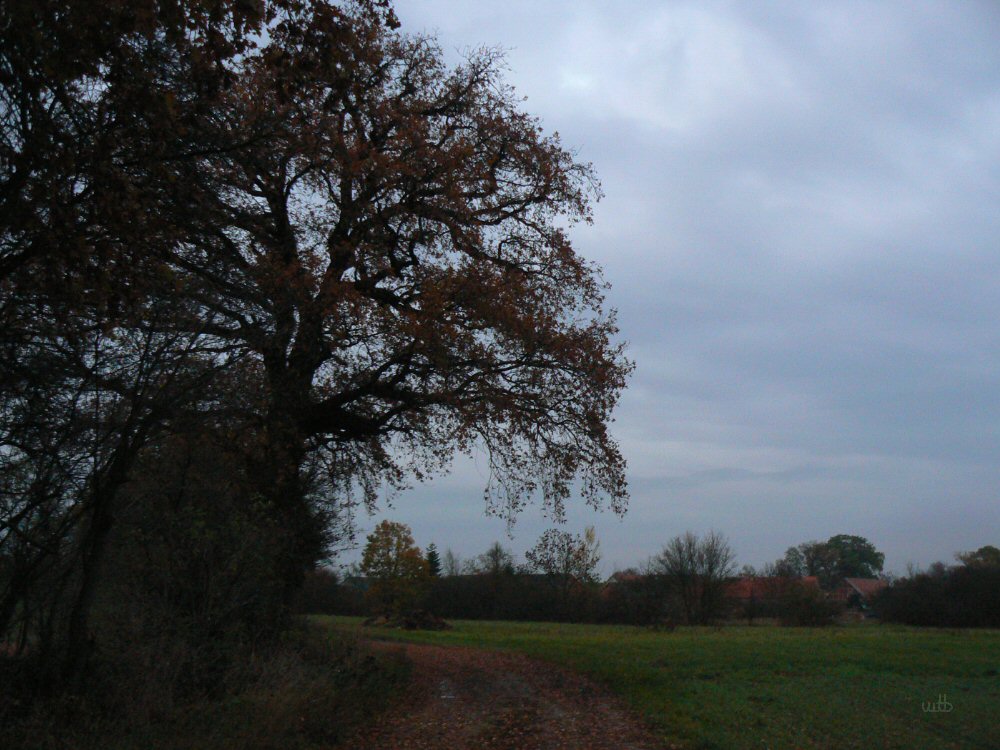 den Wind vermehrt von den Eichen auf den Boden. Wir schauen recht genau,