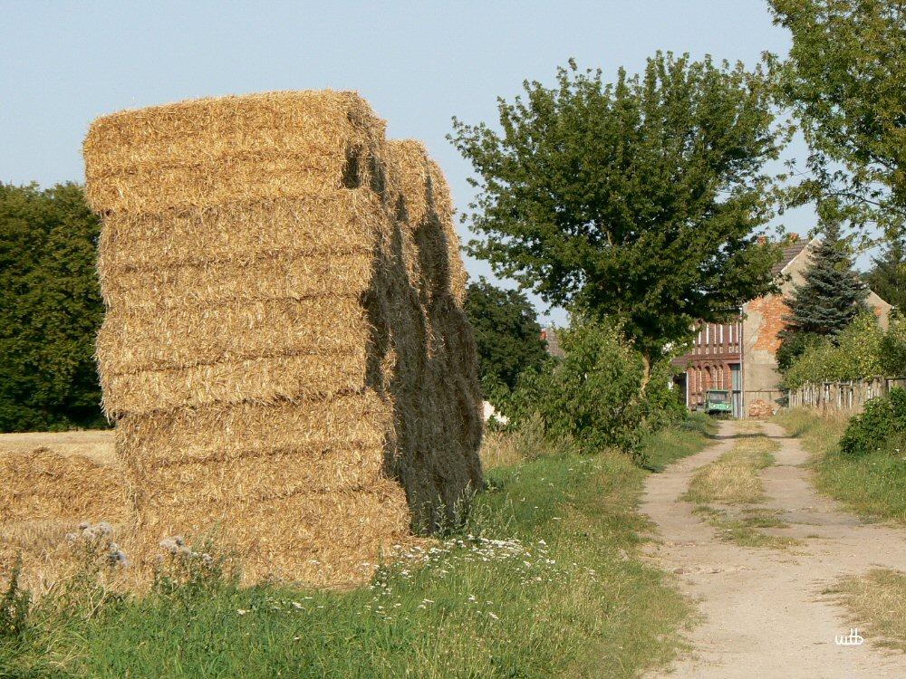 Haushohe Strohwände säumen den Weg.