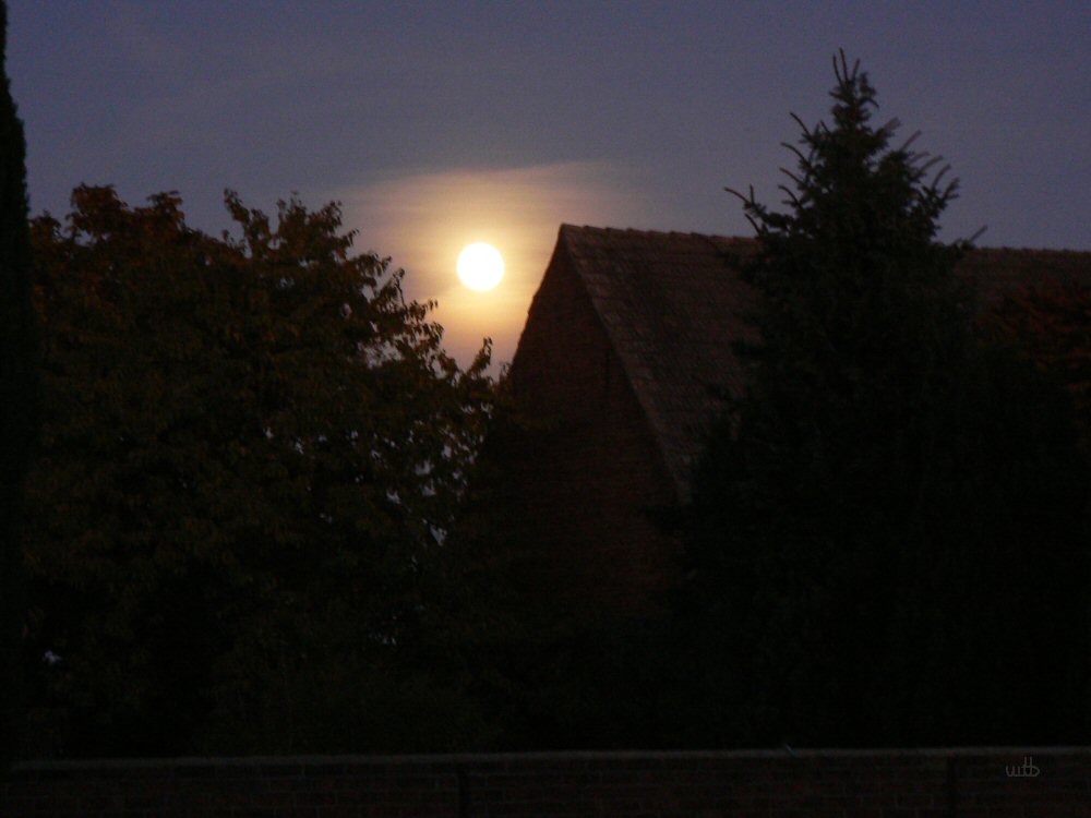 Der Mond geht hinter den Häusern auf