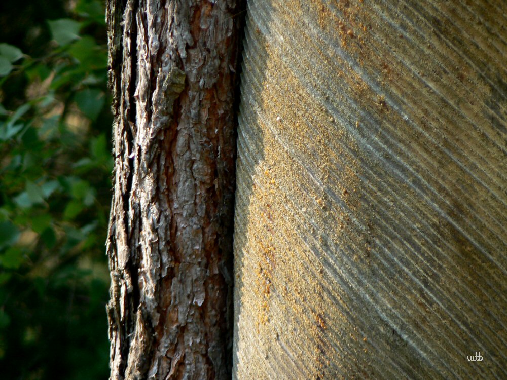 Ich fotografiere derweil die Bäume, an denen offensichtlich früher mal Harz gewonnen wurde.