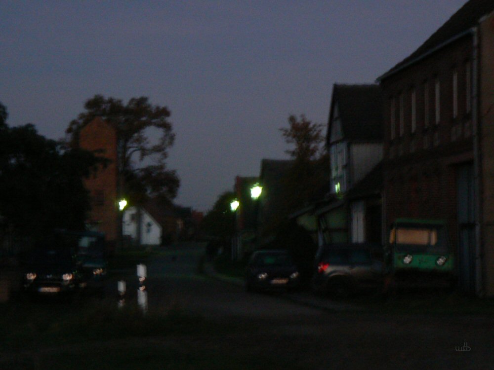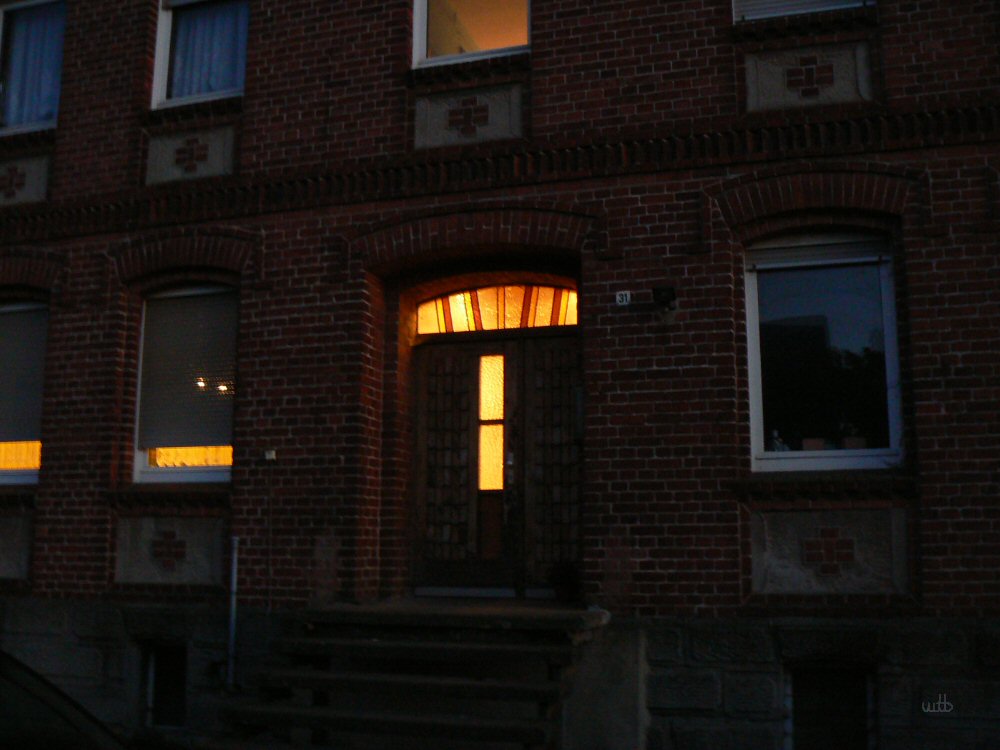 In den Wohnungen brennt das Licht. Manche haben noch richtige Glühbirnen.. schöne