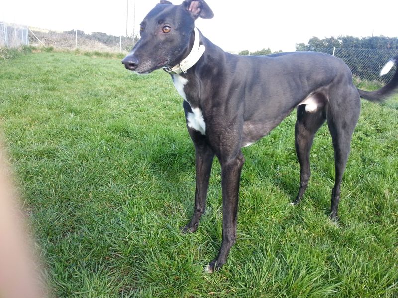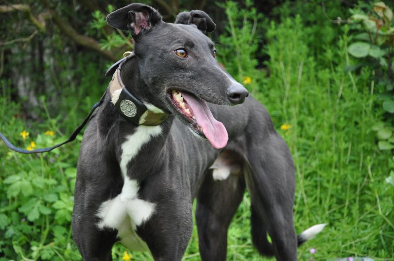 Sunny, übrigens ein Rüde unseres Transporteurs Ian, ist ein souveräner großer Greyhound.