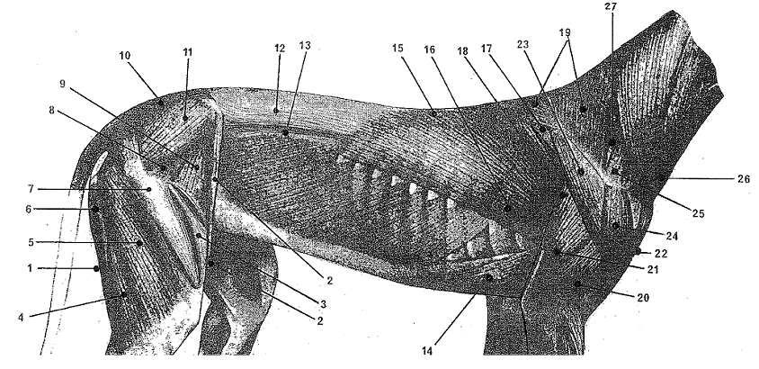 16. LATISSIMUS DORSI (fan muscle) – LATISSIMUS DORSI - Bewegung: zieht das Vorderbein zurück