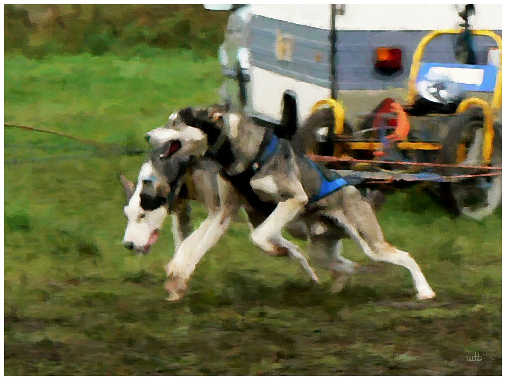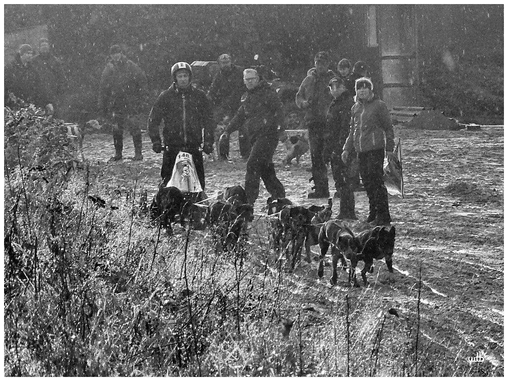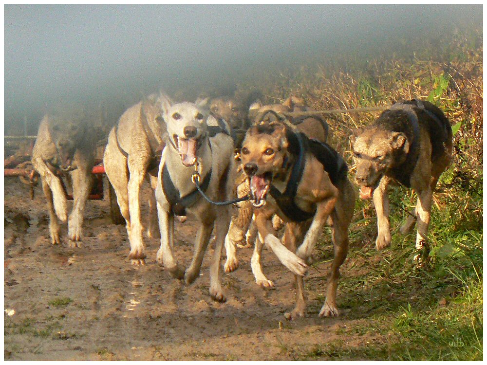 Die kleine dame vorne links im Gespann kenne ich. Sie war und ist sehr scheu, aber ein kleiner starker Arbeitshund, zudem ist sie Drogenhund, und kann allerlei. Ich habe sie vor Jahren portraitert, mitten auf der Seite.