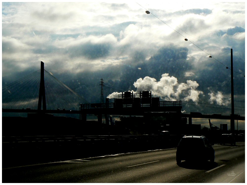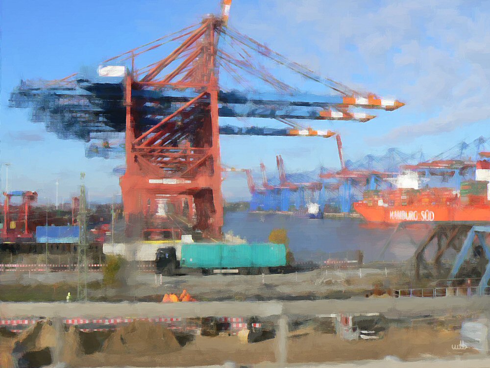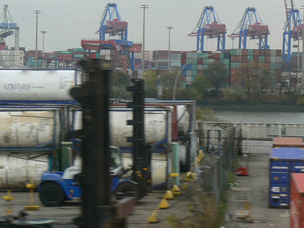 Dann fahren wir durch Hamburg. Wieder mal mache ich Fotos vom Industriehafen von der Autobahn